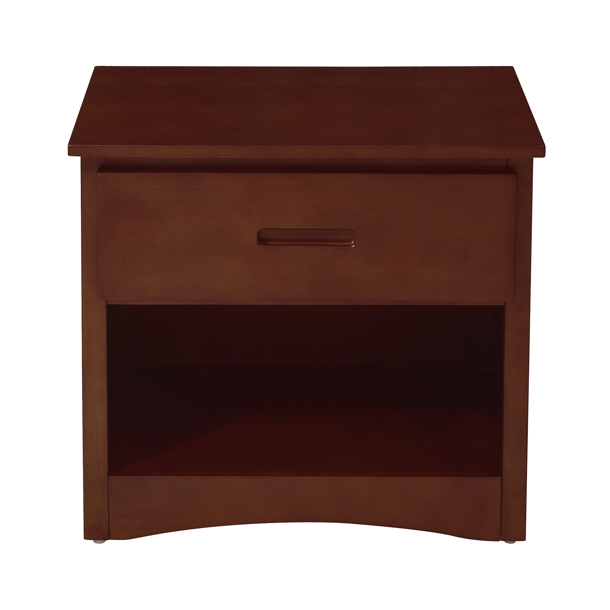 The transitional design of the Rowe Collection’s nightstand is featured in a dark cherry finish making it an appropriate choice for a number of youth bedroom settings. Also available: twin over twin bunkbed, twin over full bunkbed, full over full bunkbed, twin over twin trundle bed with two built-in drawers, underbed dual toy boxes, twin trundle, dresser, mirror and chest.