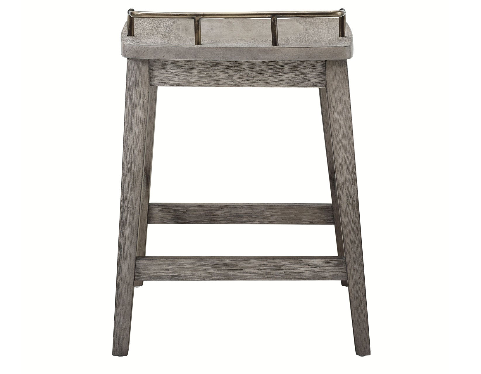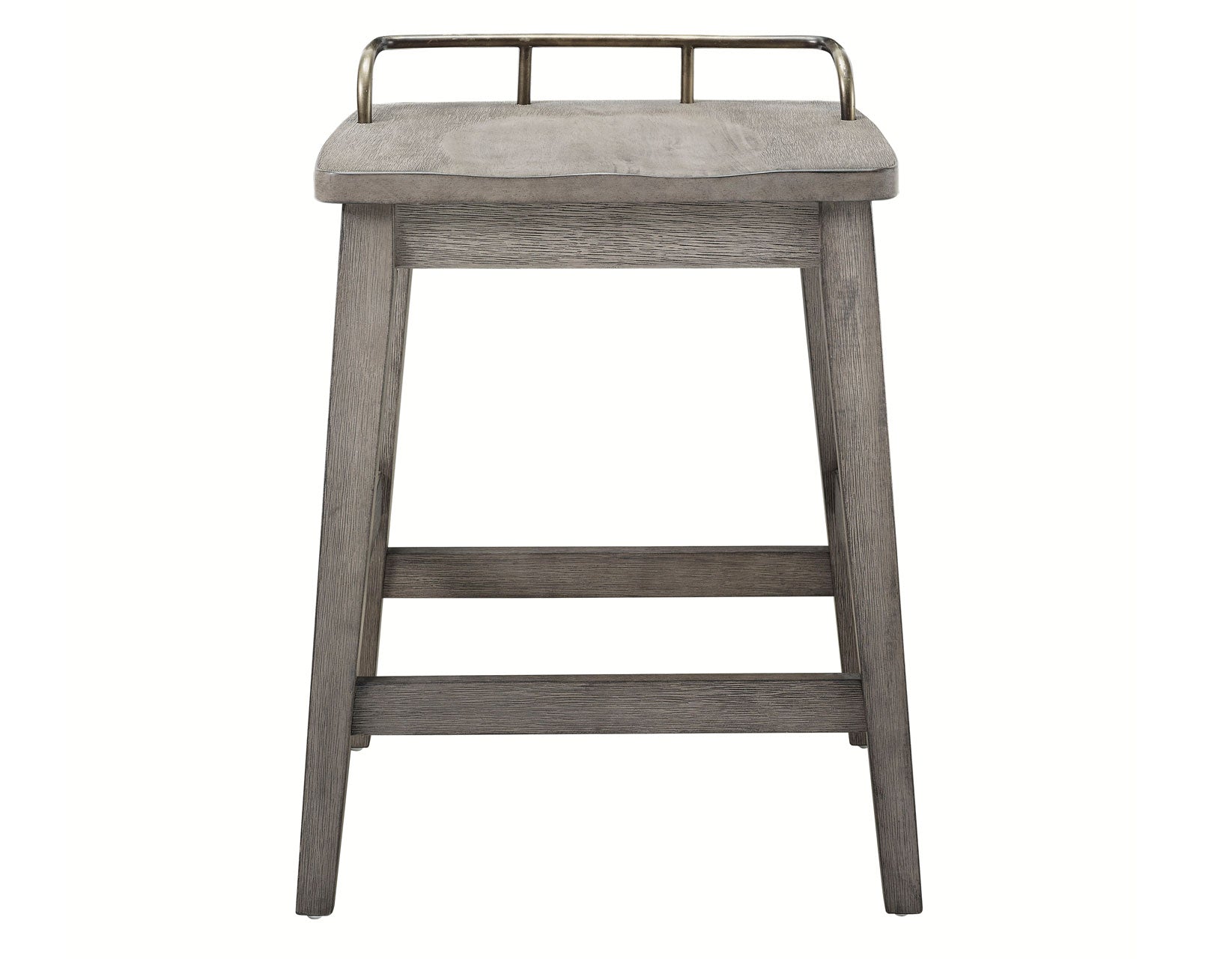 Ryan presents stylish, rustic counter dining built for the way we live today. A smoky oak finish combines with antiqued brass hardware and galley rails to create the feel of a time-worn antique. These Counter Stools are casual and comfortable and work well with the Ryan Counter Table or when used at a separate counter area.