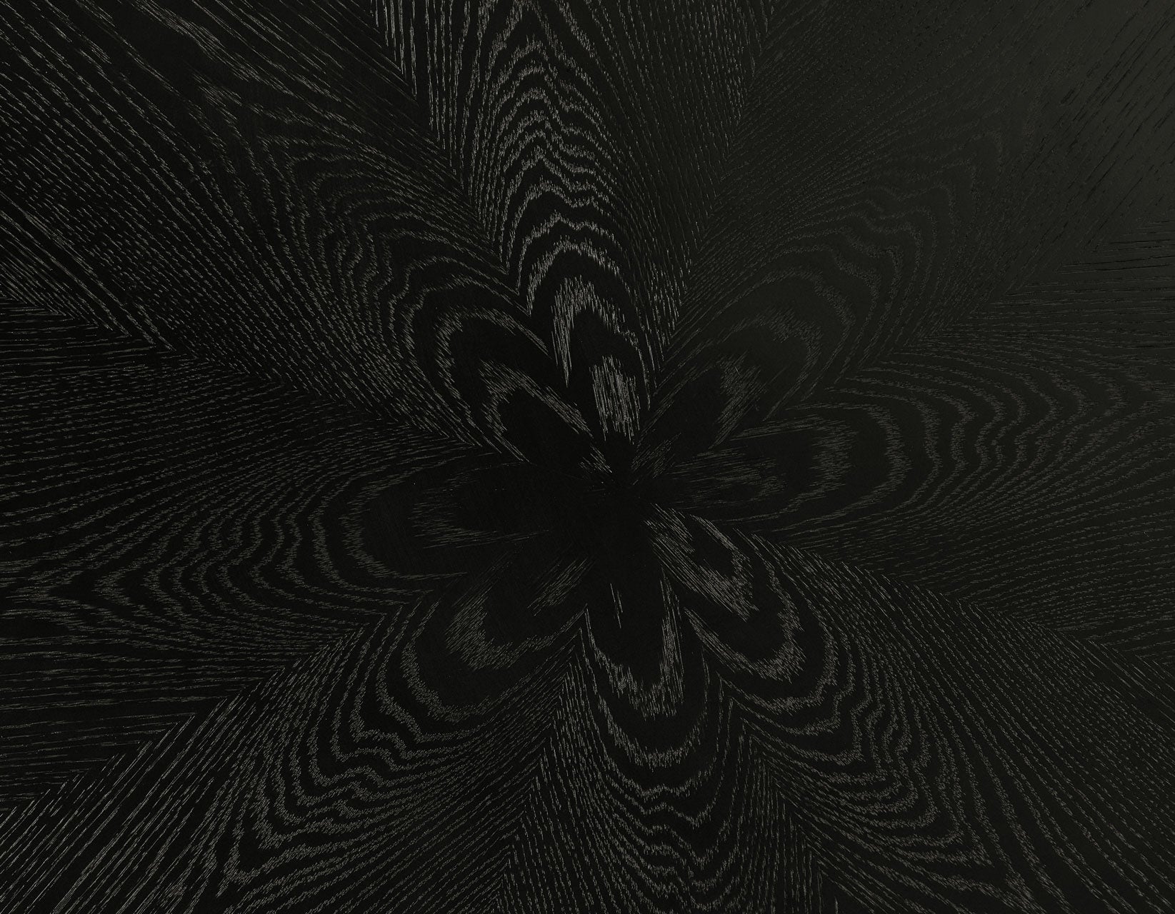 Beautiful inlaid pinwheel oak veneer pattern creates a stunning work or dining surface