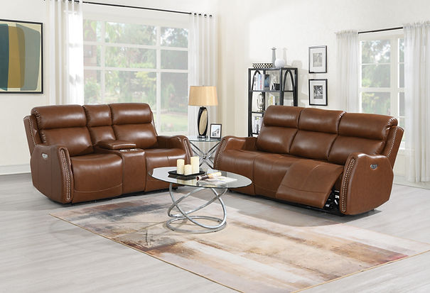 Leather Loveseat Power Reclining & Headrest with Console 69W*40.5D*40H
