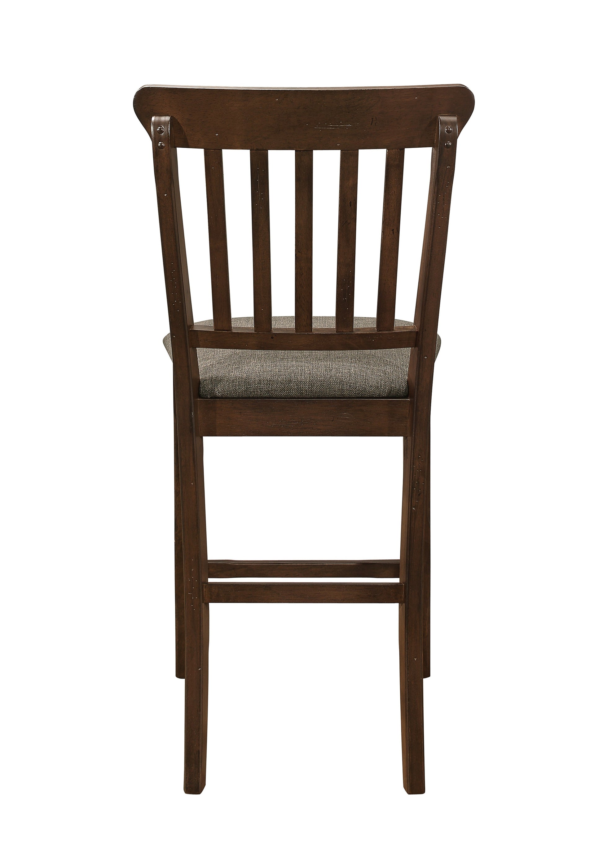 Transitionally styled with a burnished brown finish, the Schleiger Collection features bold accenting and functional storage options. The counter heigh chairs allows for versatile seating options for this industrial influenced look.