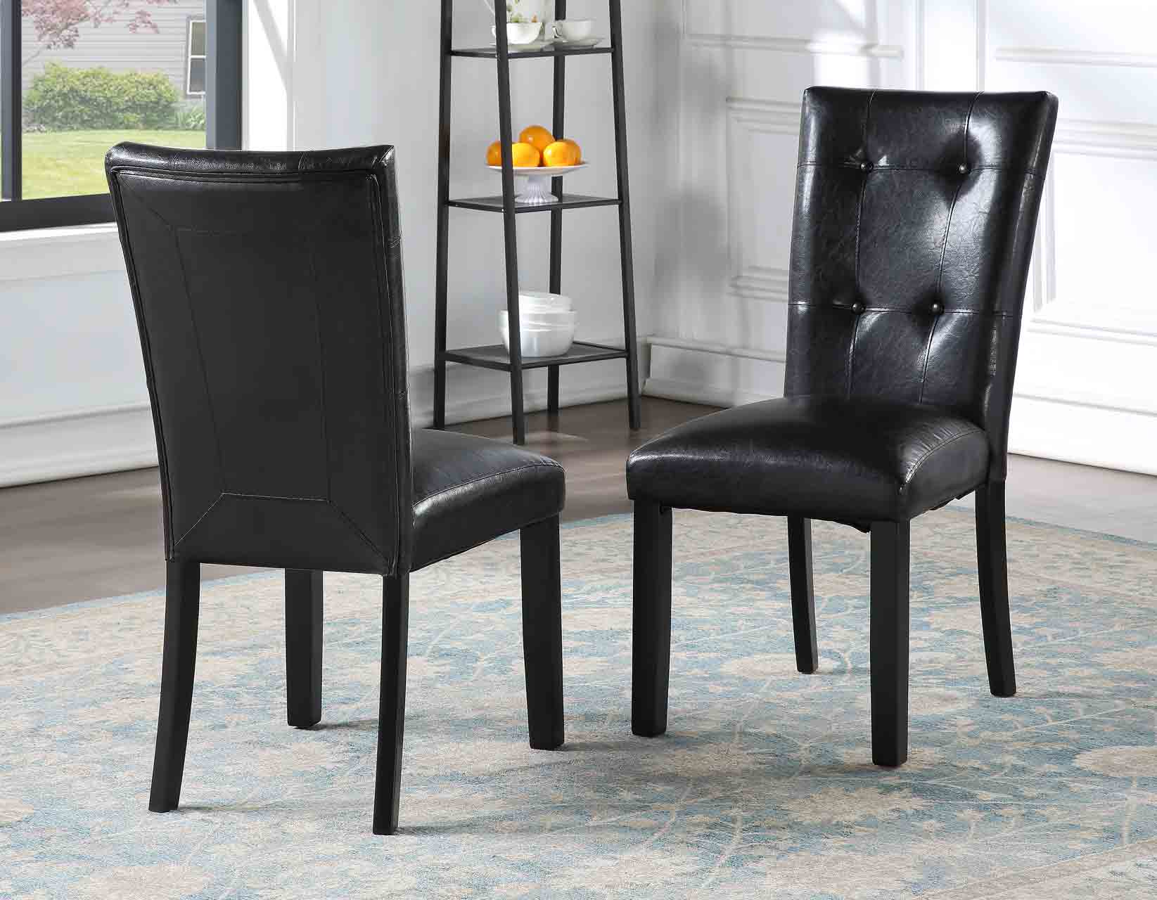 Comfortable and elegant, the Sterling Side Chair will dress up any room while welcoming guests at the same time. The button-tufted back and cordovan cherry wood finish add depth and warmth to any room while the ebony faux-leather cover offers a great look with easy-to-clean convenience.