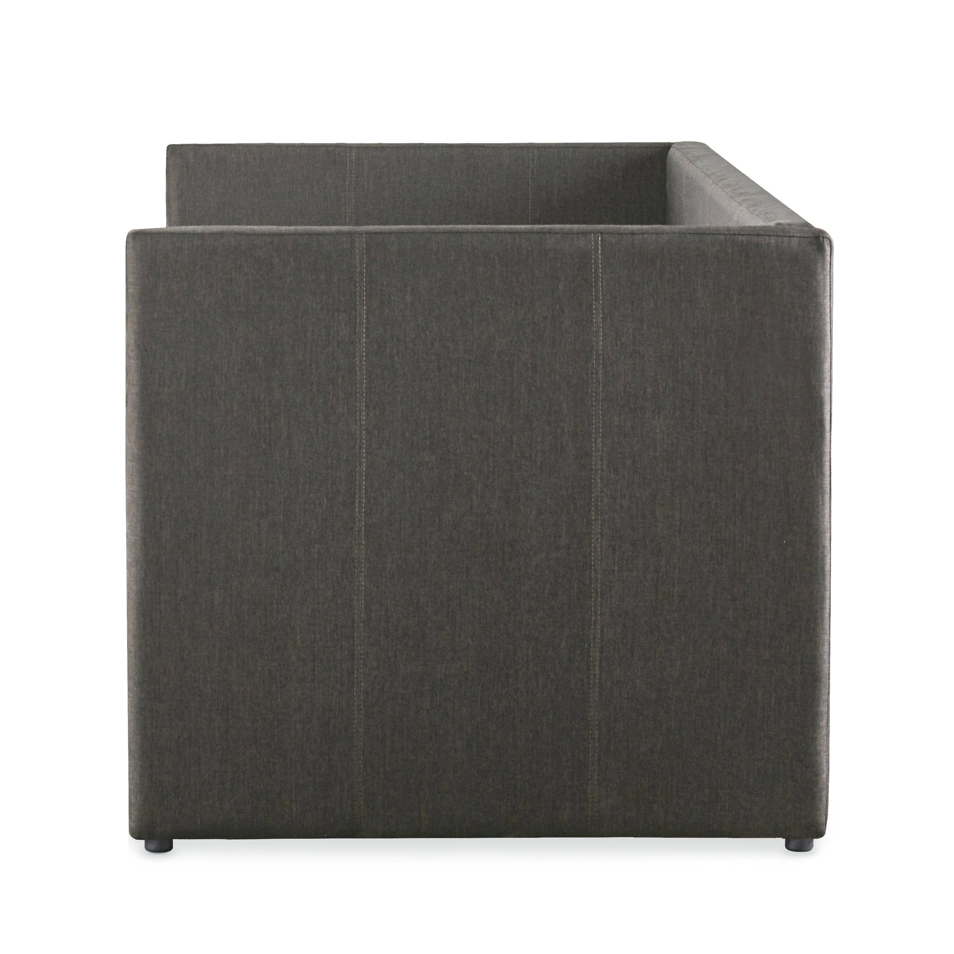 The fabric covering of the Therese Collection is offered in five colors – Blue, Orange, Chocolate, Gray, and Red – that blended with nailhead accent and clean lines, creates a look that compliment your home decor. Whether used for sleeping or relaxing, the clean-line daybed design allows for placement in a number of room sizes and configurations, while the under-bed trundle pulls out to accommodate your additional sleep space needs.