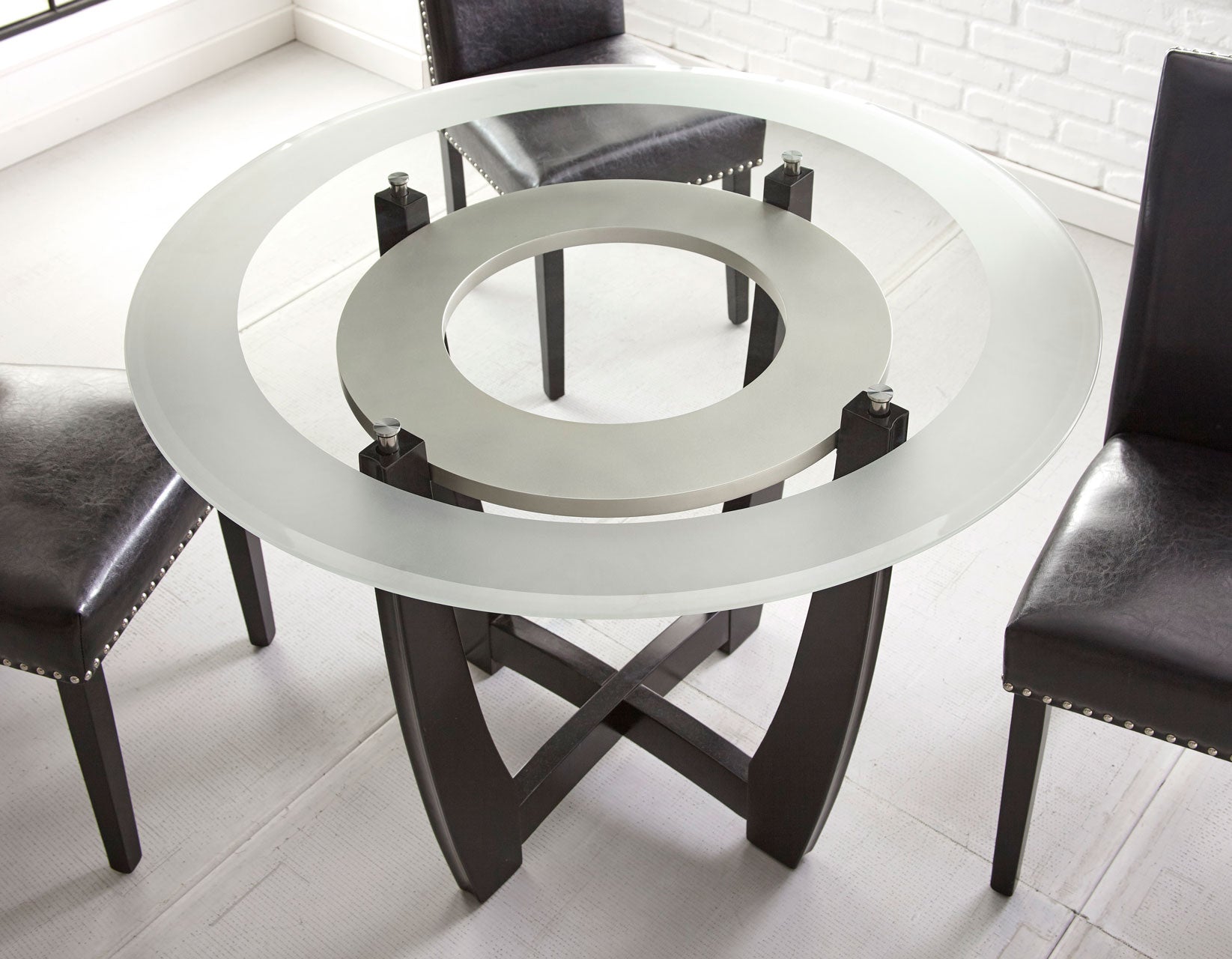 Dine in style with Verano. Contemporary styling with a dramatic under top chrome presentation and frosted glass border, this collection will spark up any dining time. Nailhead trim Parson’s Chairs in black or gray polyurethane make cleanup a breeze, Whether entertaining, working or dining with family, Verano will spice up any dining area