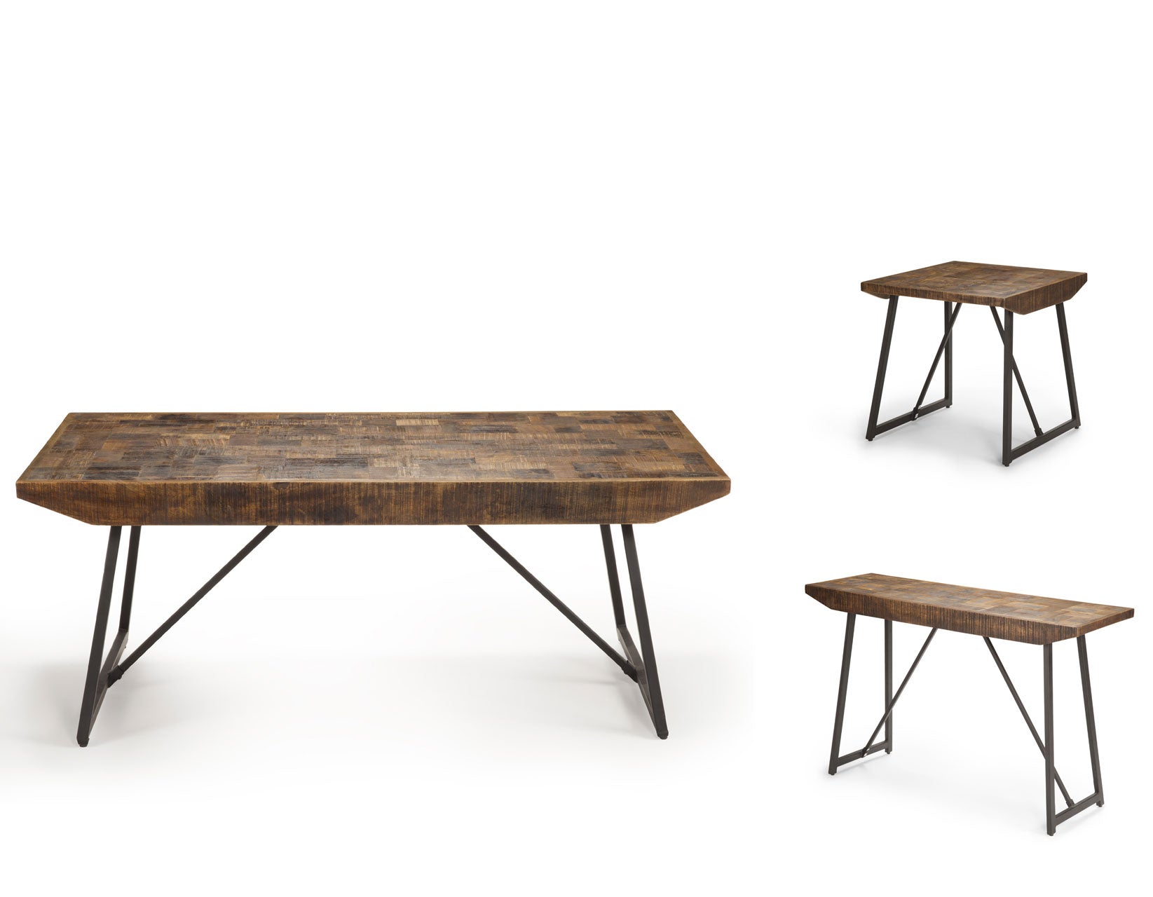 A transitional styled Side Table for living room or bedroom, the Walden End Table brings mixed media and excellent craftmanship to brighten any room. A neutral black iron base complements the lustrous chestnut finished top laid in a signature parquet pattern. Lively, rustic and eclectic, Walden can complement any decor.