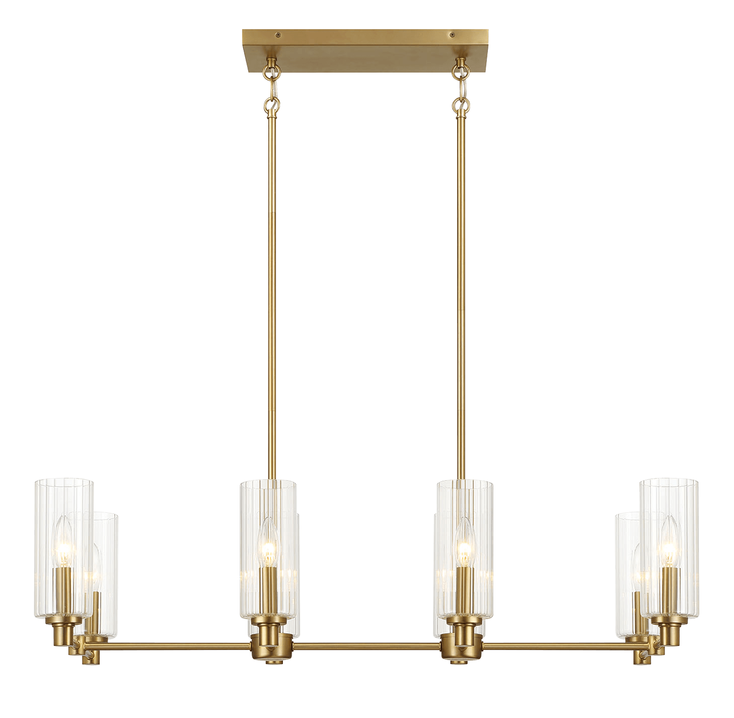 Willow Eight Lights Island With Clear Ribbed Glass Pendant Lamp - Satin Brass