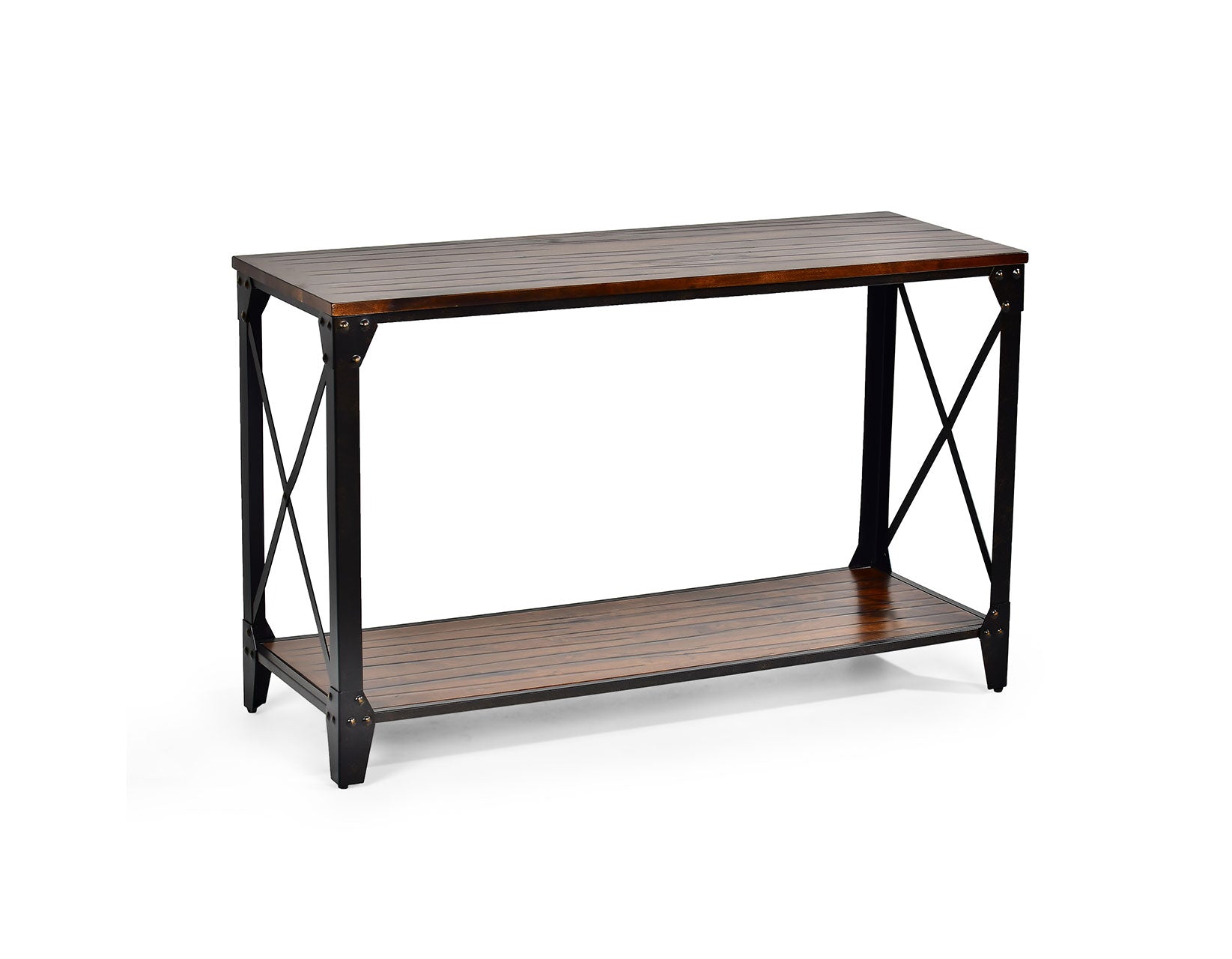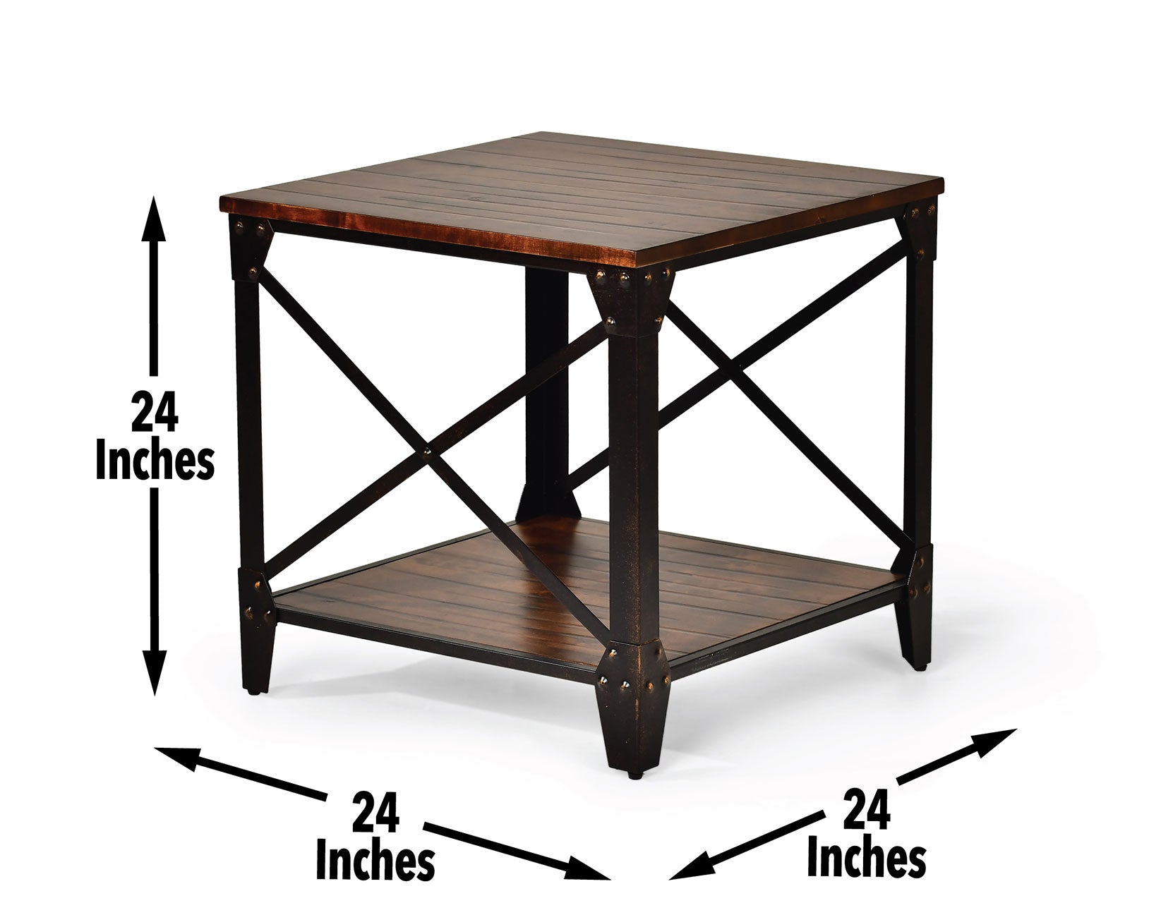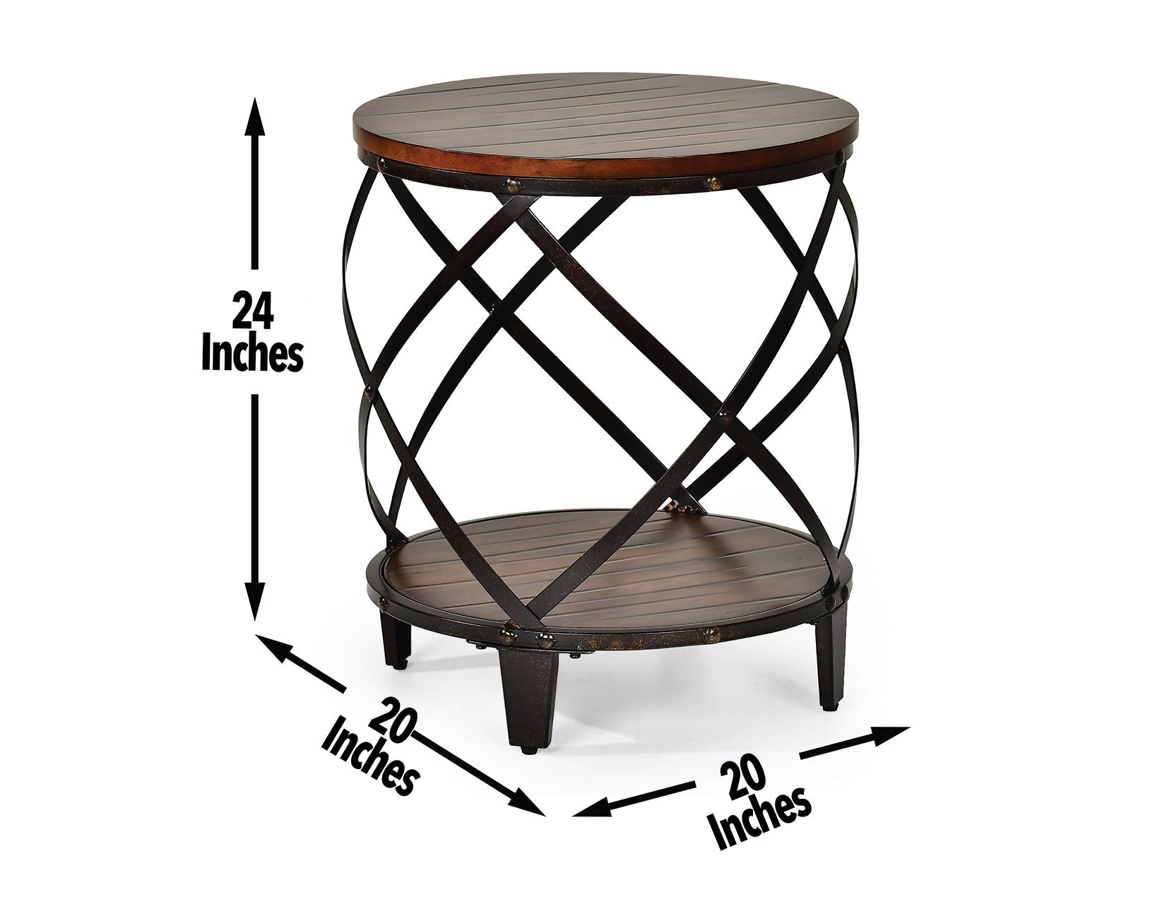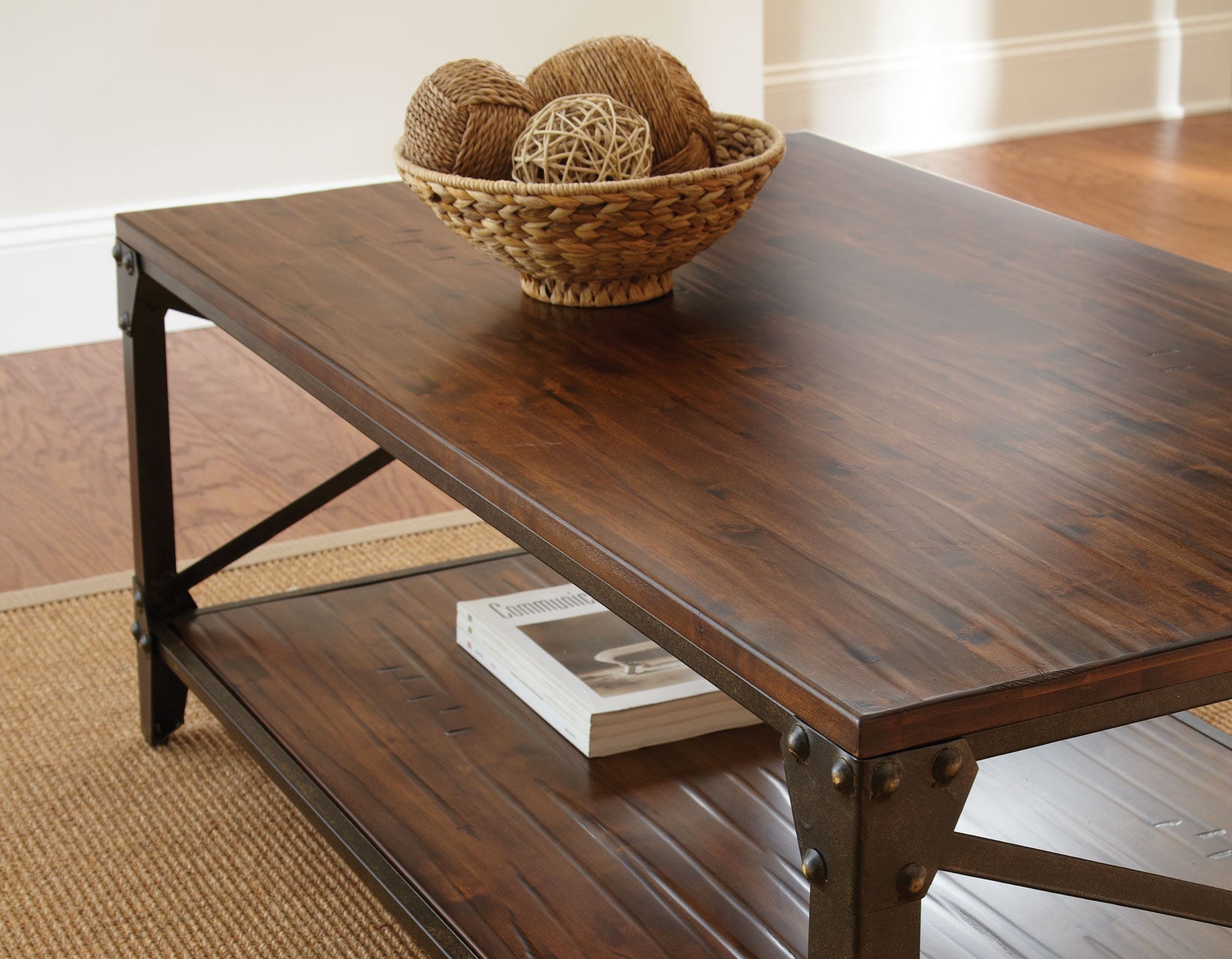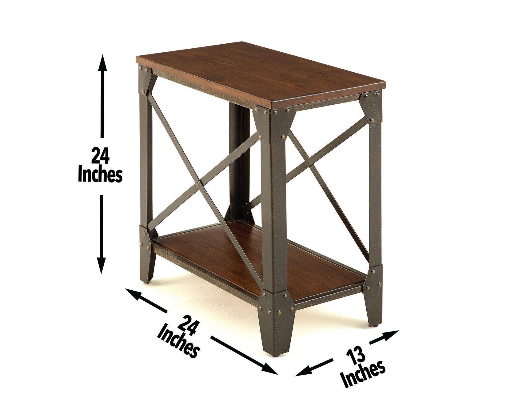 The finest in industrial design, Winston is a wide-ranging occasional collection for lofts or homes yearning for transitional styling. This set features a solid wood top and shelf with hand-scraped distressing giving the collection the feel of a timeworn piece plucked from a mid-century factory. Wood and metal interplay combine with refined elements of French bracket feet and exposed rivets for a truly special collection. A large assortment of tables from Cocktail, Round End, Square End, Chairside End and Sofa Table allow exact customization of any space.