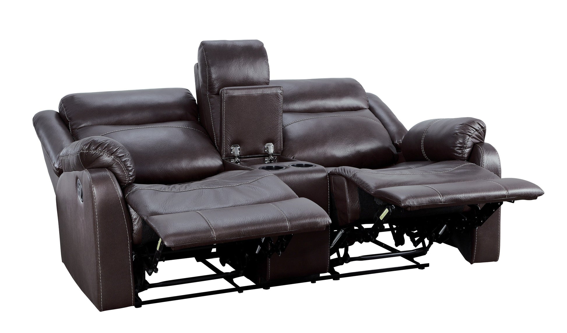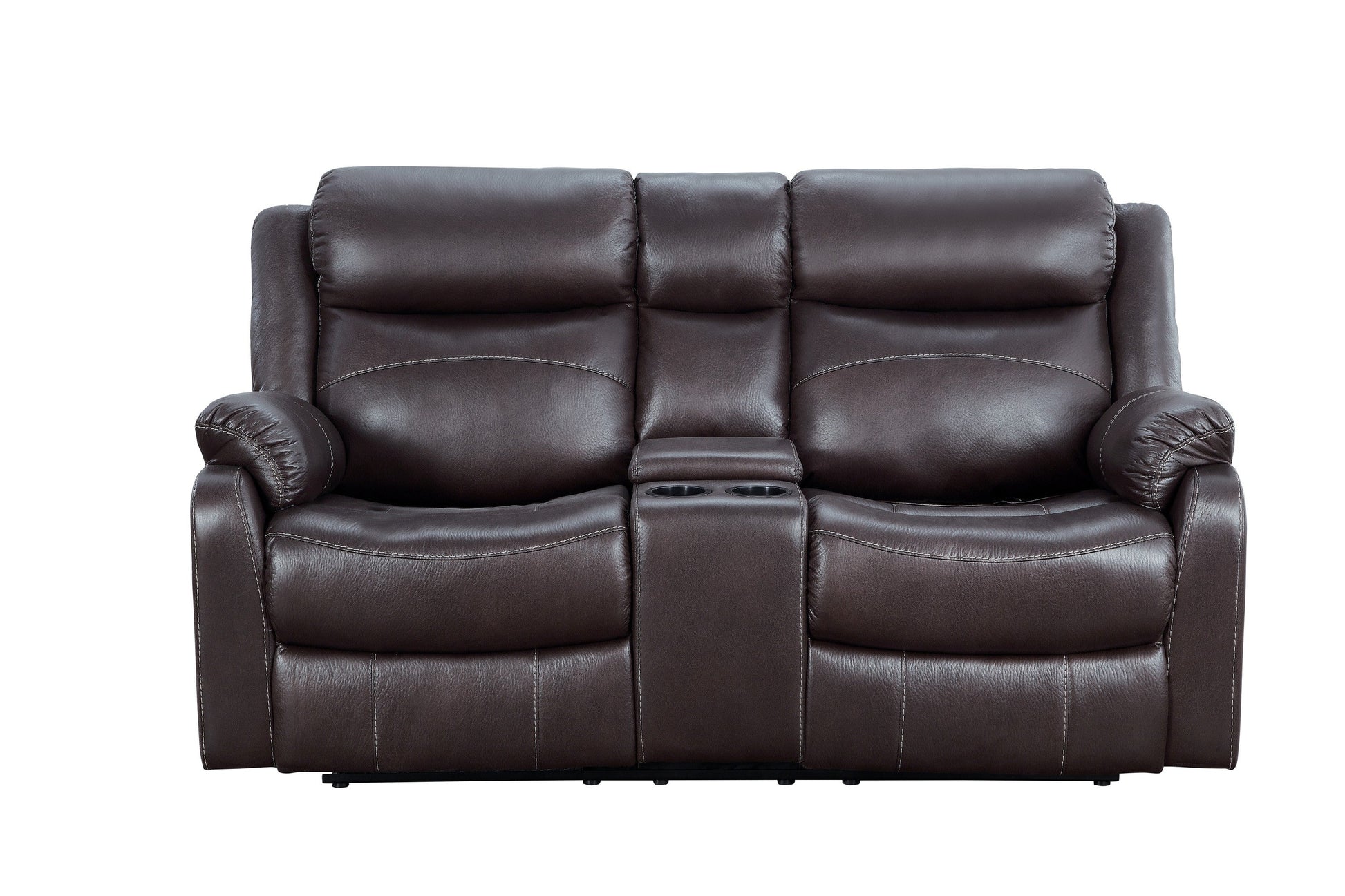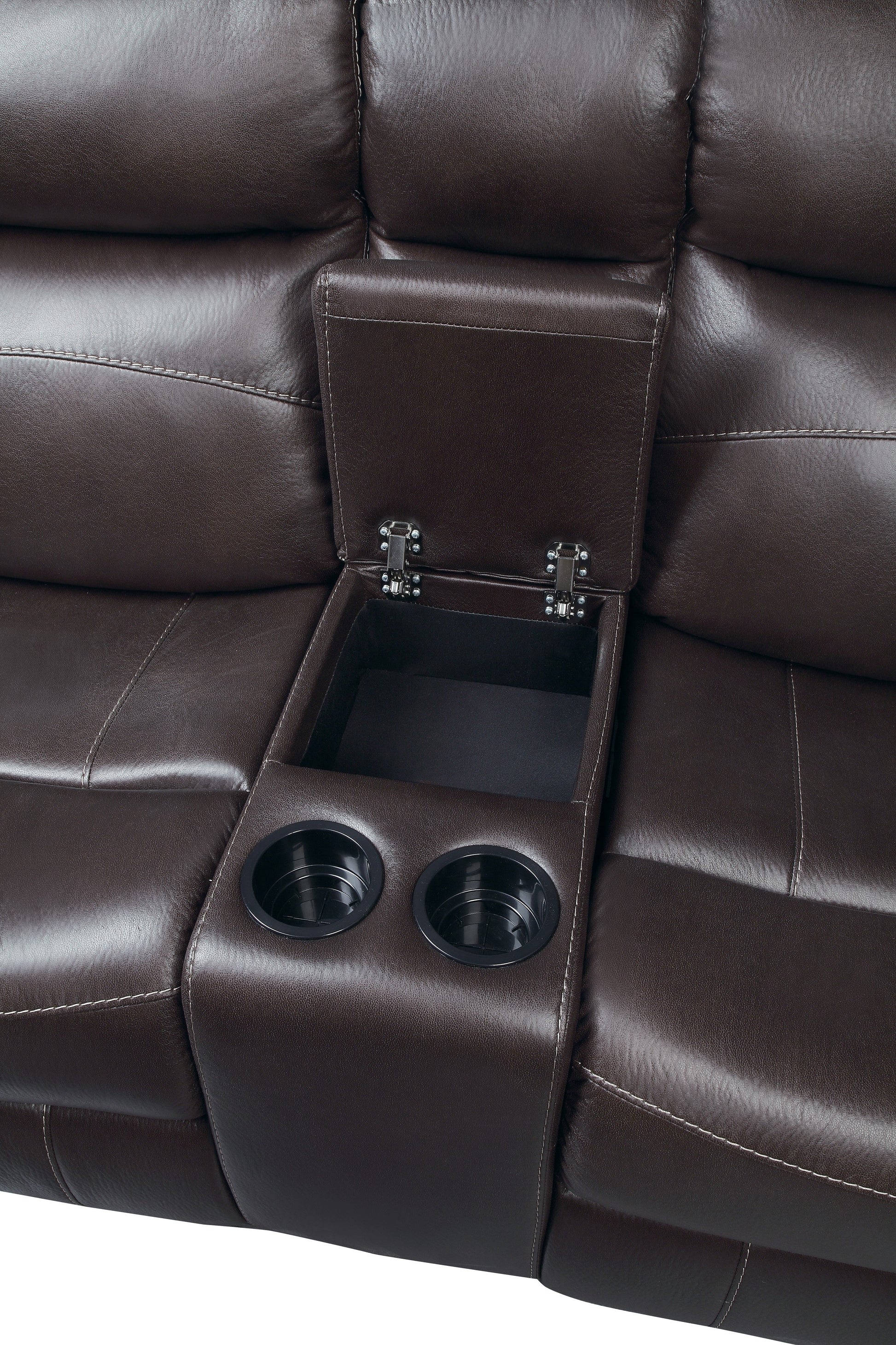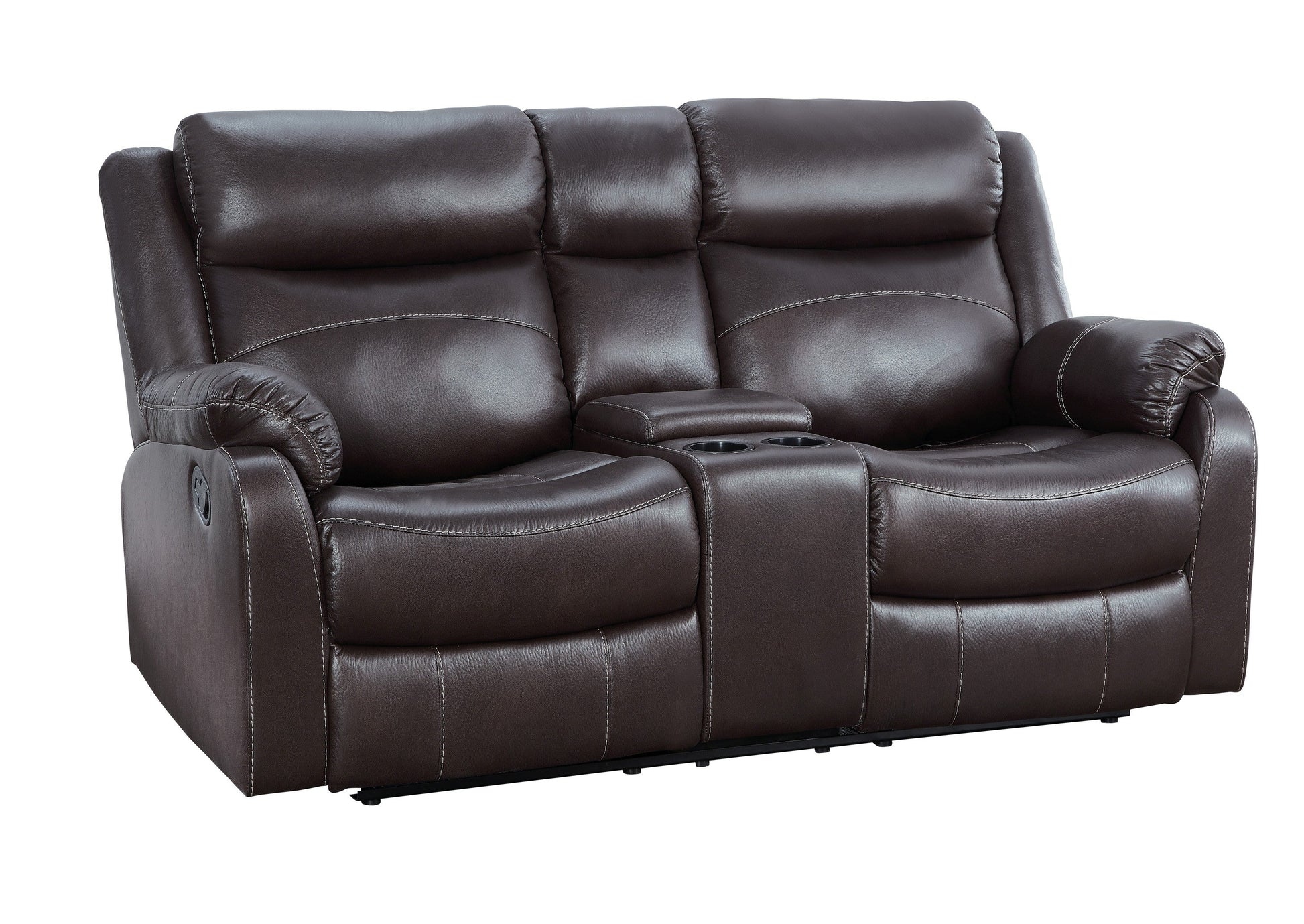 Designed to make your downtime as relaxing as possible, the Yerba Collection will be a welcome addition to your home. Dark brown polished microfiber fabric covers the plush seating of this motion love seat. Function amenities include the center console with dual cup holders and lift top storage on the love seat. Providing additional function is the extended reclining mechanism installed on love seat that allows for further extension than the average recliner.