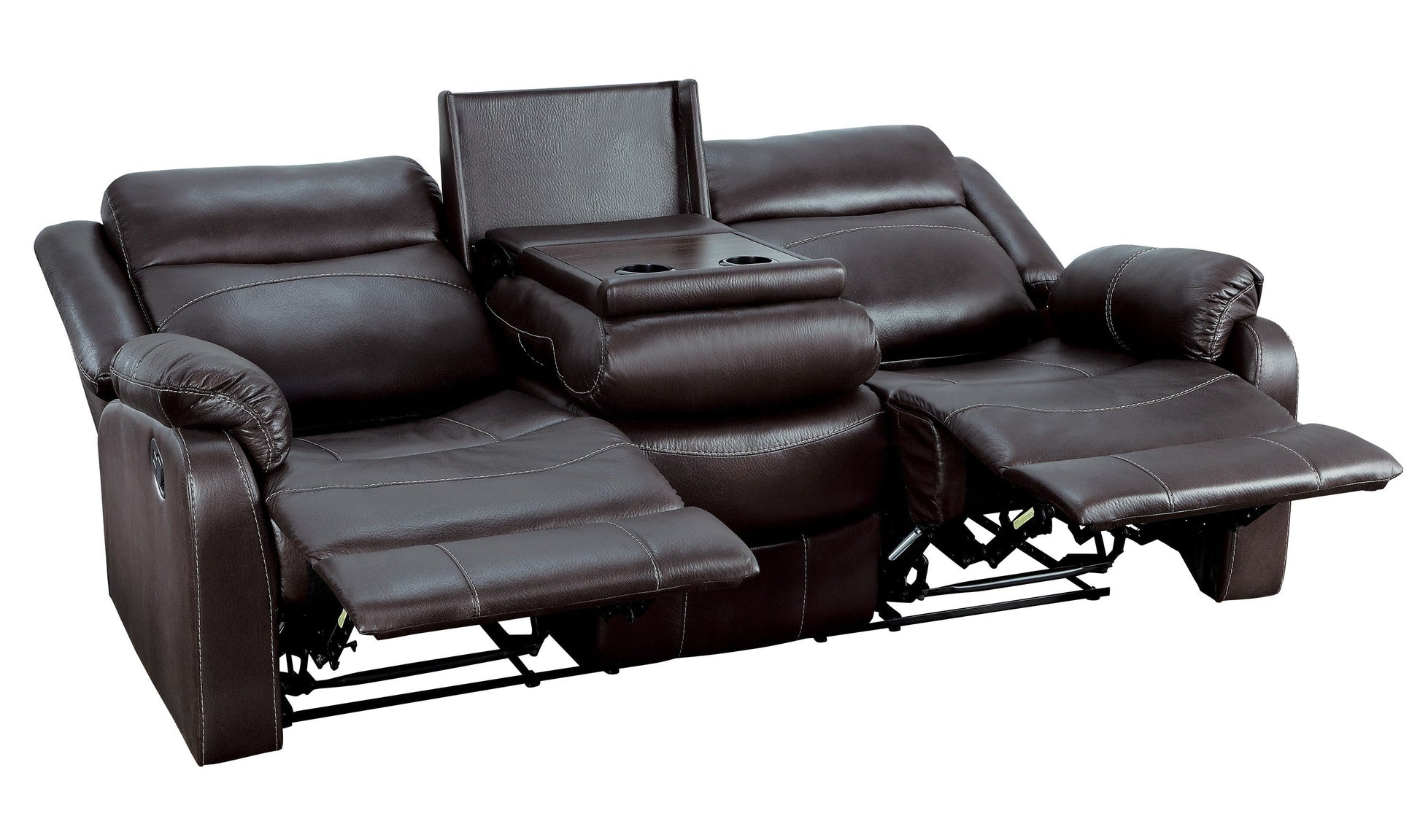 Designed to make your downtime as relaxing as possible, the Yerba Collection will be a welcome addition to your home. Dark brown polished microfiber fabric covers the plush seating of this motion sofa. Function amenities include the unique drop down back center console and dual reclining ends of the sofa. Providing additional function is the extended reclining mechanism installed on sofa that allows for further extension than the average recliner.